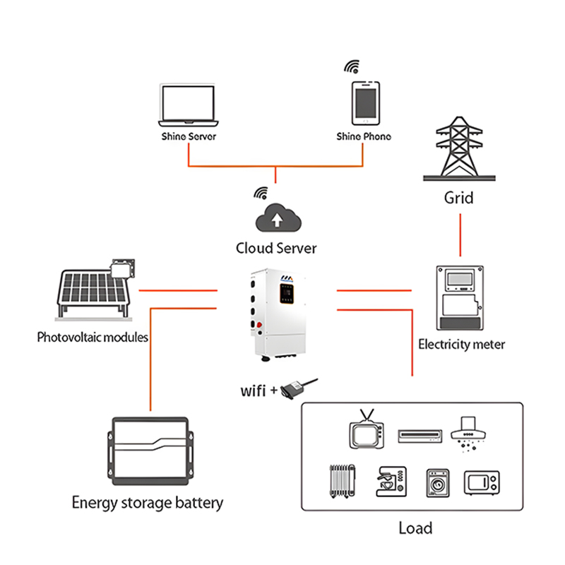 Certification de test UL 1741 :2021, IEEE 1547.1, UL1699B, Afrique du Sud NRS097-2-1 :2017 ; Prise en charge de la connexion parallèle multi-machines ; Prend en charge le mode parallèle multi-machines partageant une batterie ; Capacité de charge pour une seule machine 100A.